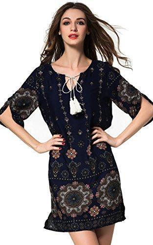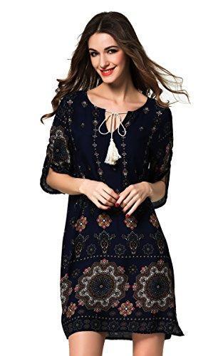 • Bohemian dress featured vintage floral printed ,fashionable ethnic style,loose fit ,thigh length.You can wear it like a tunic top with leggings or jeans if dress is short for you.
