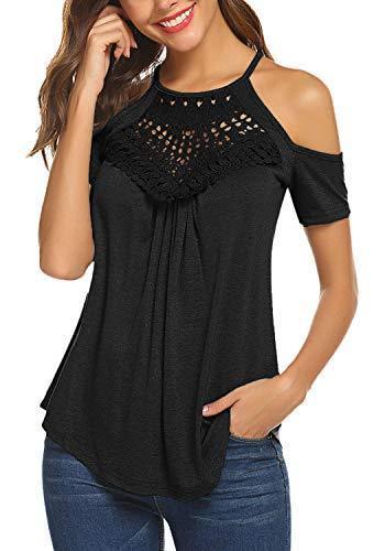 • Lace cold shoulder top for women,juniors,ladies. short sleeve basic tee shirt, pleated and flowy.